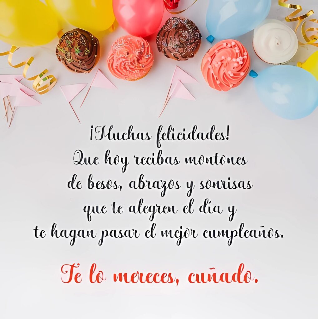 Muchas Felicidades! Que hoy recibas montones de besos, abrazos y sonrisas que te alegren el día y te hagan pasar el mejor cumpleaños. Te lo Mereces cuñado. Feliz cumpleaños para un cuñado