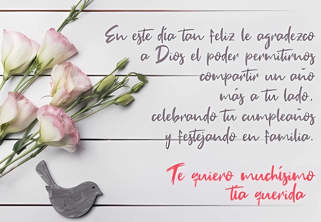 En este día tan feliz le agradezco a Dios el poder permitirnos compartir un año más a tu lado, celebrando tu cumpleaños y festejando en familia… Tarjetas de cumpleaños para una tía con frases bonitas